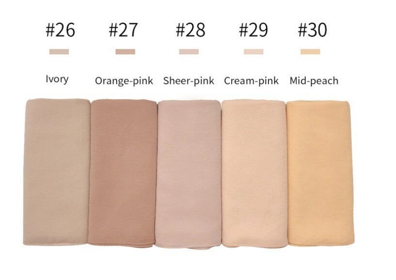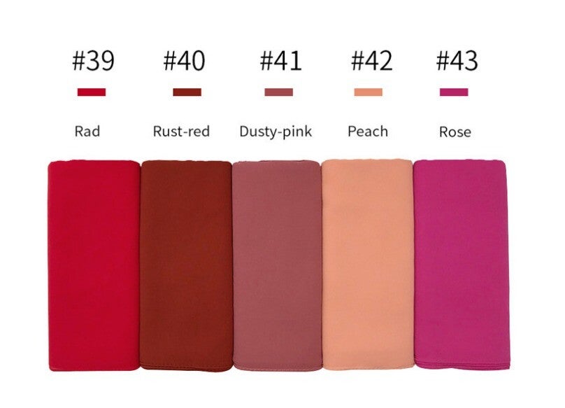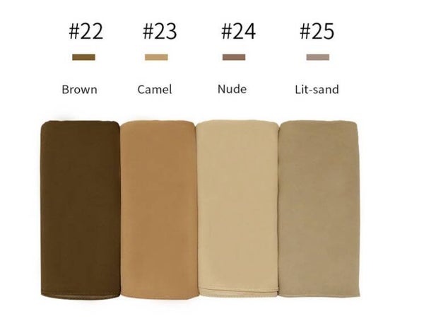Our 'non-slip' premium chiffon hijabs were designed and created out of a real need for chiffon hijabs that were not 'see-through' or slippery. They are cut and sewn to perfection using our custom fabric which is textured like georgette, but soft and smooth like chiffon. They are long enough to ensure appropriate coverage and layering if desired.